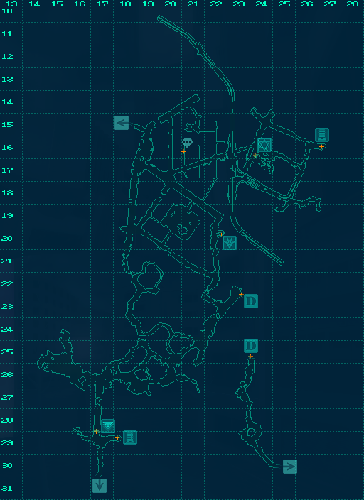 | Exit(s) | Shinjuku Babel (17,31) Kakyo Castle (18,15) Zoushigaya Cemetery (23,22) Zoushigaya Cemetery (24,25) |
