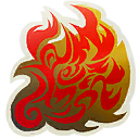 A sticker featuring the logo of a musician who was a superstar a long time ago. The logo conjures images of fire.