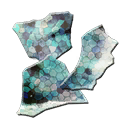 A piece of shard that shines in glitter and rainbow colors.